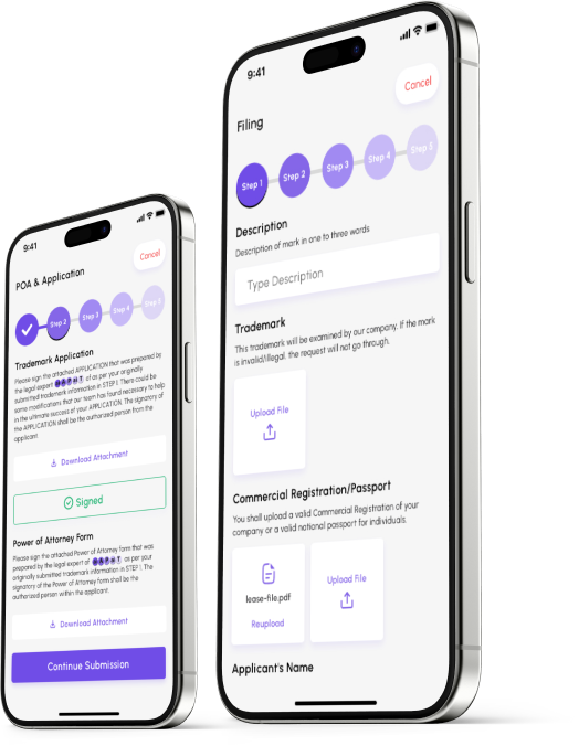 Mobile Platform will simply take 5 Steps. Step1 is for the Submission of your request. Only after the payment of step 1, you will receive a case number. This case number can be used for calling over the phone and chatting over the chat box with our experts with respect only to the progress of your application. The other Steps2, 3, 4, and 5 steps relate to your Trademark’s filing, publication, registration, and certificate.
